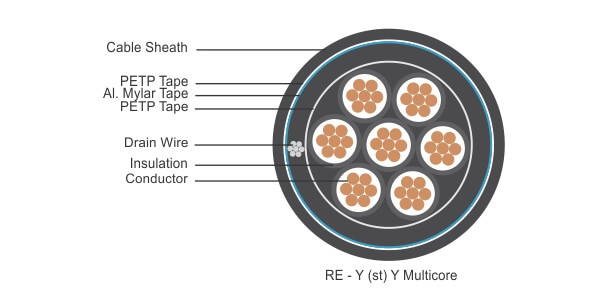 • Individual Screen : Aluminium / PETP tape over tinned copper drain wire, plastic tape under and above screen