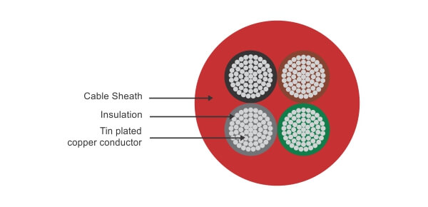 | Part Number | Nominal Cross Sectional Area (Sq. mm) | Approx. Cable Diameter (mm) | Approx. Copper Weight (kg/km) | Approx. Cable Weight (kg/km) |