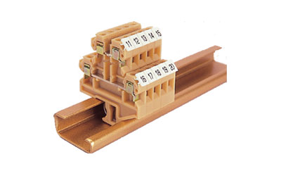 elmex 'U' Series Terminal Blocks are based on Modular Type design with all Brass parts for special applications. The proven screw-clamp design offers high contact force. The special design of the clamp makes it possible to terminate 0.2 sq mm conductor on the lower side. All metal parts are made of high conductivity brass. The housing is made of Polyamide 66. The feed through terminal blocks are available to accommodate conductor sizes from 0.2 sq mm to 10 sq mm. elmex Twin Terminal Blocks solve the problem of power distribution by accommodating two separate cable connection points on the load side. elmex Double Level Terminal Blocks offer an easy solution to space problem. The special feature of providing offset between lower and upper decks allow better accessibility to the lower level screws and visibility of labels.